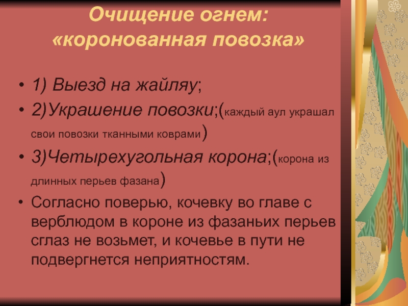 2)Украшение повозки;(каждый аул украшал свои повозки