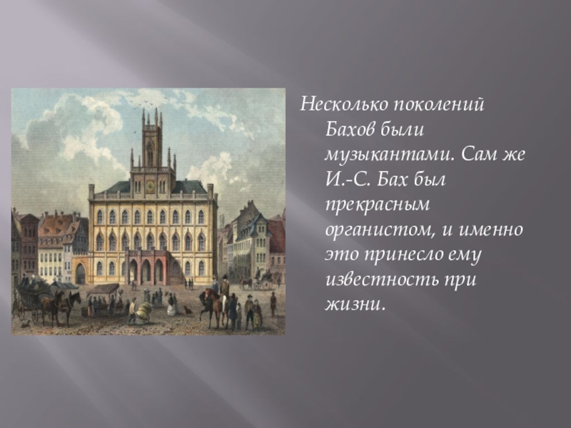 Слайд 2Несколько поколений Бахов были музыкантами. Сам же И.-С. Бах был прекрасным