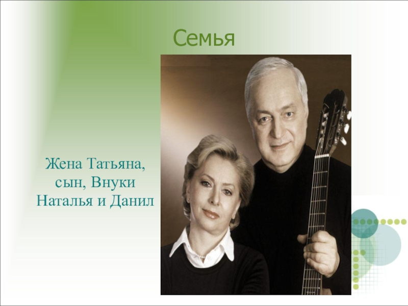 Жена Татьяна, сын, Внуки Наталья и Данил