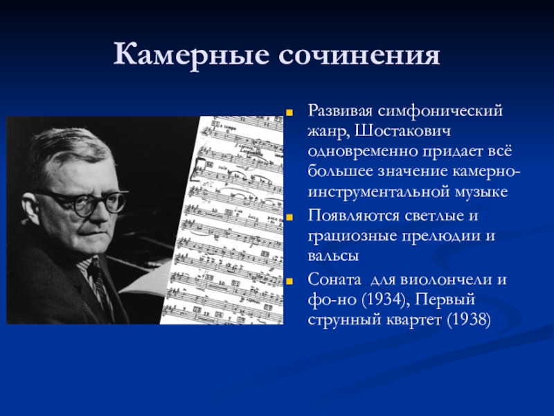 Развивая симфонический жанр, Шостакович одновременно придает всё большее значение камерно-инструментальной