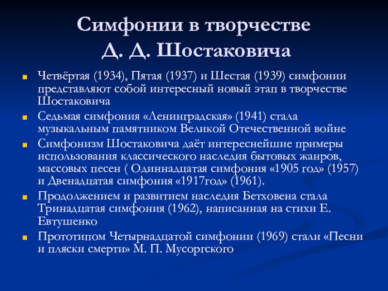 (1939) симфонии представляют собой интересный новый этап в творчестве Шостаковича