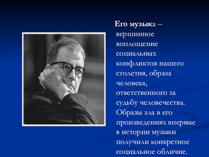 образа человека, ответственного за судьбу человечества. Образы зла в его произведениях впервые в истории музыки получили конкретное социальное обличие.