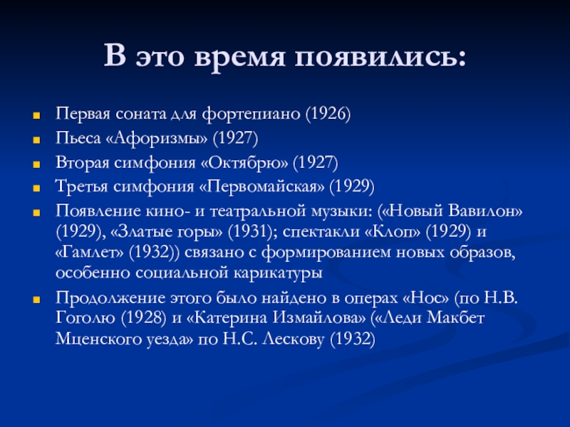 В том же 1926 году в творчестве Шостаковича обозначился