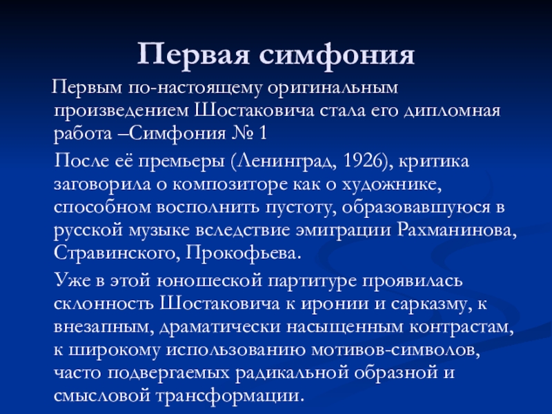 Первым по-настоящему оригинальным произведением Шостаковича стала его дипломная