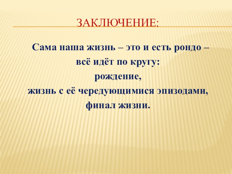 Заключение: Сама наша жизнь – это и есть рондо – всё идёт по кругу: рождение, жизнь с