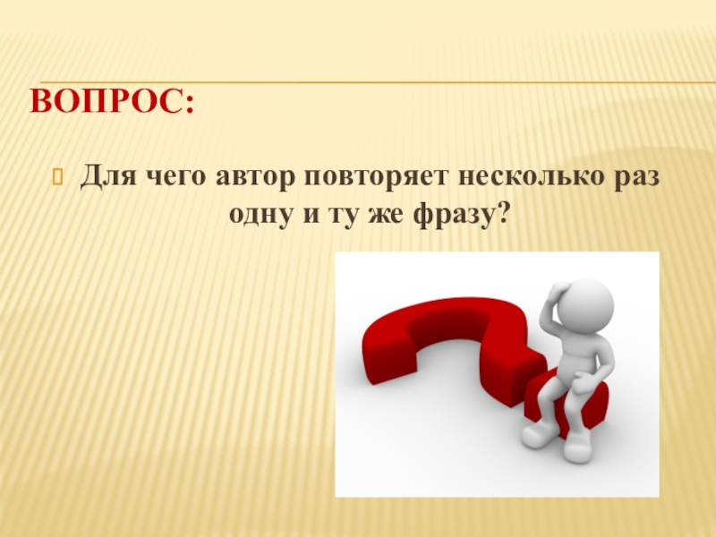 ВОПРОС:Для чего автор повторяет несколько раз одну и ту же фразу?