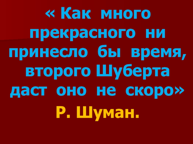 Слайд 2« Как много прекрасного ни принесло бы время, второго Шуберта даст