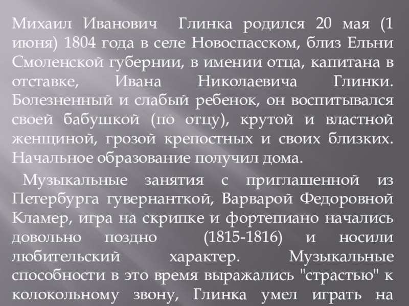 Слайд 2Михаил Иванович Глинка родился 20 мая (1 июня) 1804 года в