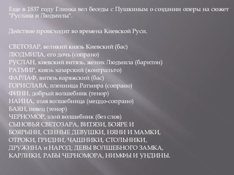 Слайд 12Еще в 1837 году Глинка вел беседы с Пушкиным о создании