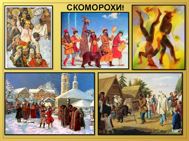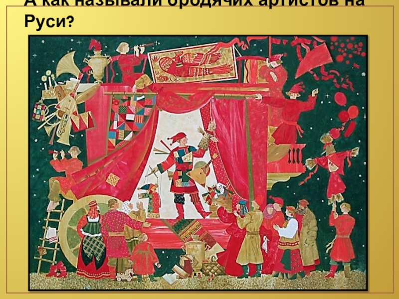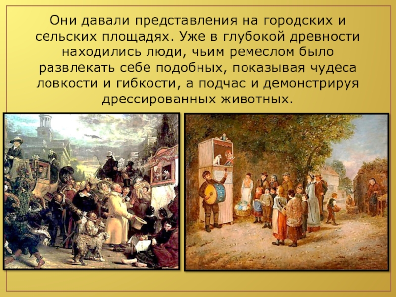 Слайд 11Они давали представления на городских и сельских площадях. Уже в глубокой