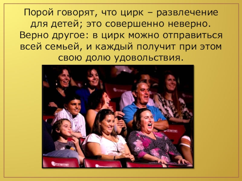 Слайд 6Порой говорят, что цирк – развлечение для детей; это совершенно неверно.