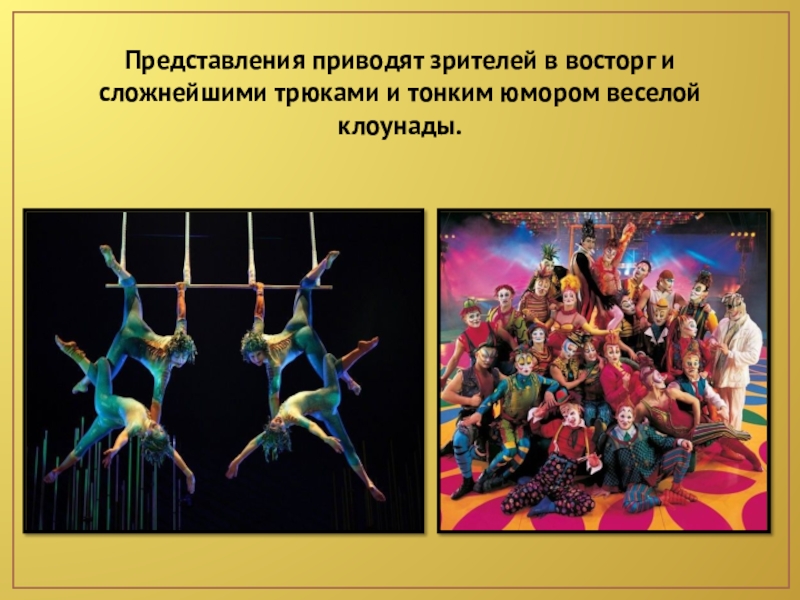 Слайд 3Представления приводят зрителей в восторг и сложнейшими трюками и тонким юмором
