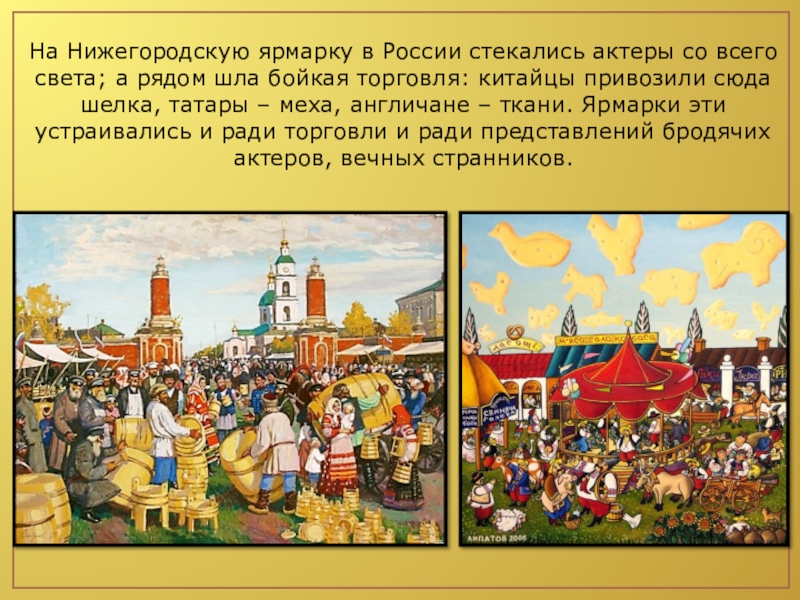 Слайд 13На Нижегородскую ярмарку в России стекались актеры со всего света; а