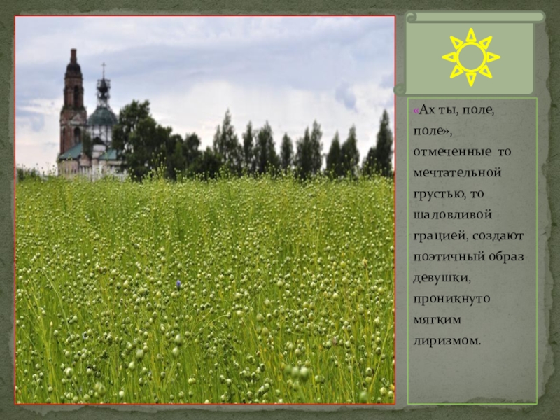 Слайд 17«Ах ты, поле, поле», отмеченные то мечтательной грустью, то шаловливой грацией,