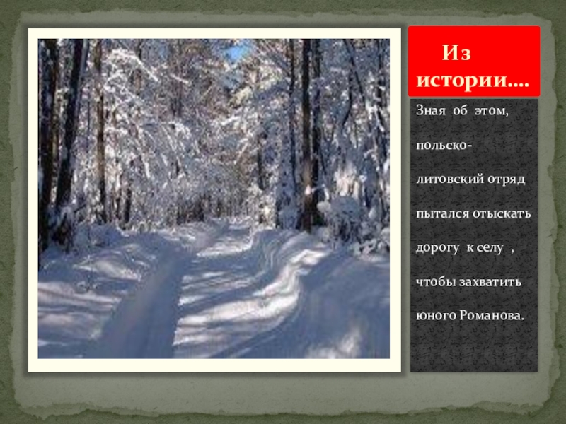 отыскать дорогу к селу , чтобы захватить юного Романова.