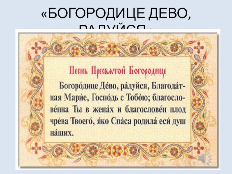 Слайд 9«БОГОРОДИЦЕ ДЕВО, РАДУЙСЯ»