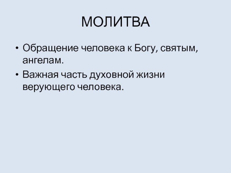 МОЛИТВА Обращение человека к Богу, святым, ангелам. Важная часть духовной жизни верующего человека.