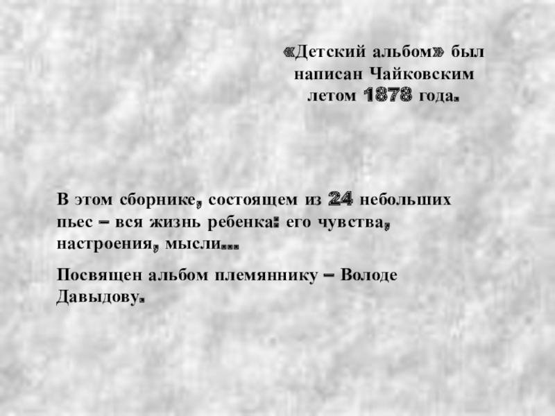 «Детский альбом» был написан Чайковским летом 1878 года.