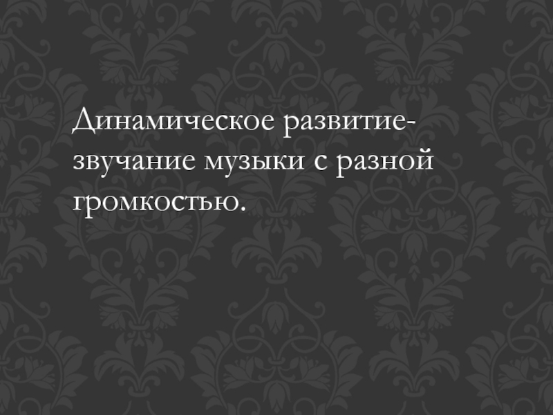 Слайд 8Динамическое развитие- звучание музыки с разной громкостью.