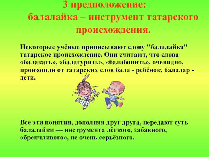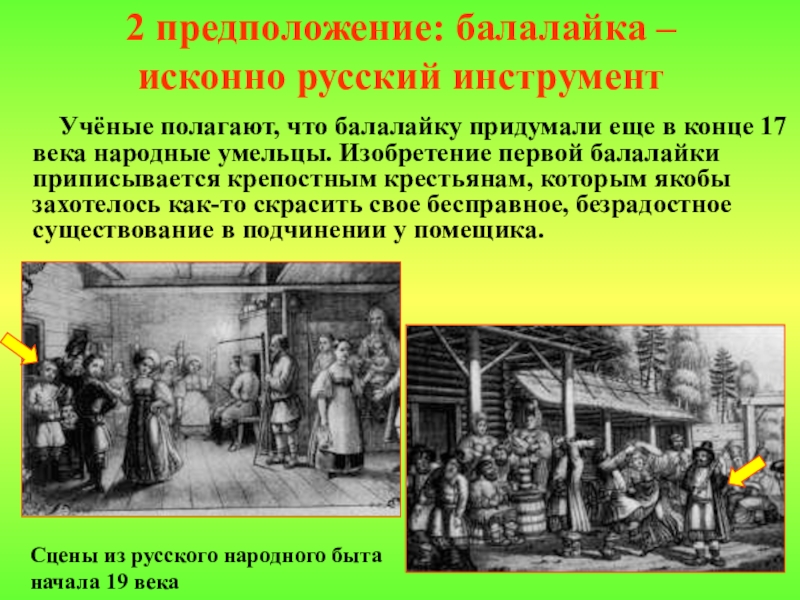 1 предположение: домбра и домра – родоначальницы балалайки.