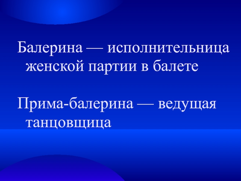 Балерина — исполнительница женской партии в балетеПрима-балерина — ведущая танцовщица