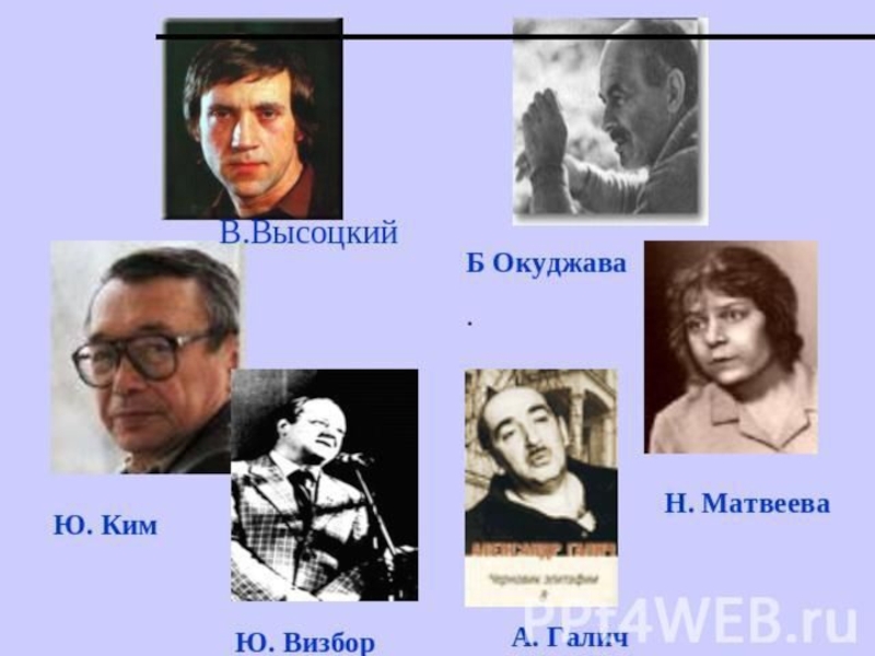 авторами. Чаще всего автором стихов и музыки, аккомпаниатором и исполнителем является один человек. Такие песни отличаются широтой охвата личных и общественных явлений, социальной активностью и правдивостью, высотой нравственных критериев.