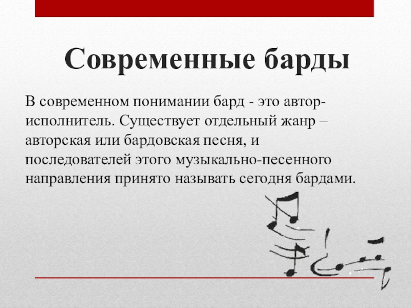 – авторская или бардовская песня, и последователей этого музыкально-песенного направления принято называть сегодня бардами.