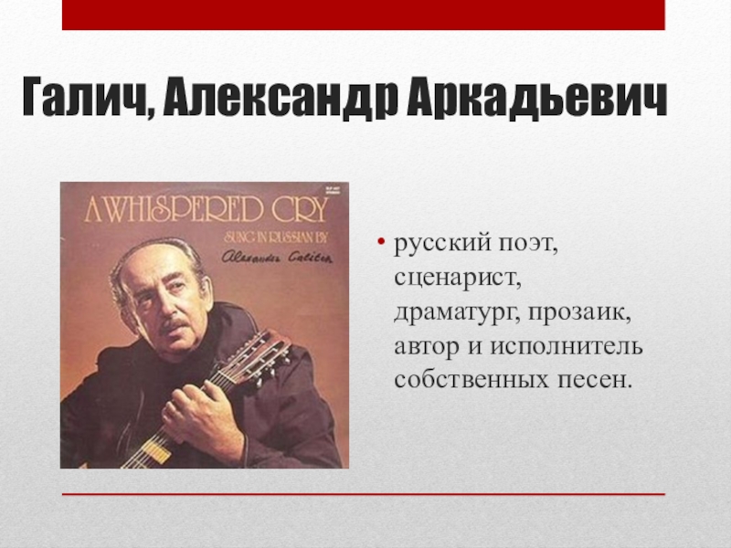 русский поэт, сценарист, драматург, прозаик, автор и исполнитель собственных