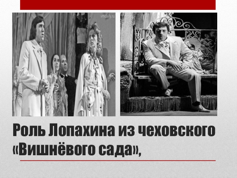 Слайд 32Роль Лопахина из чеховского «Вишнёвого сада»,