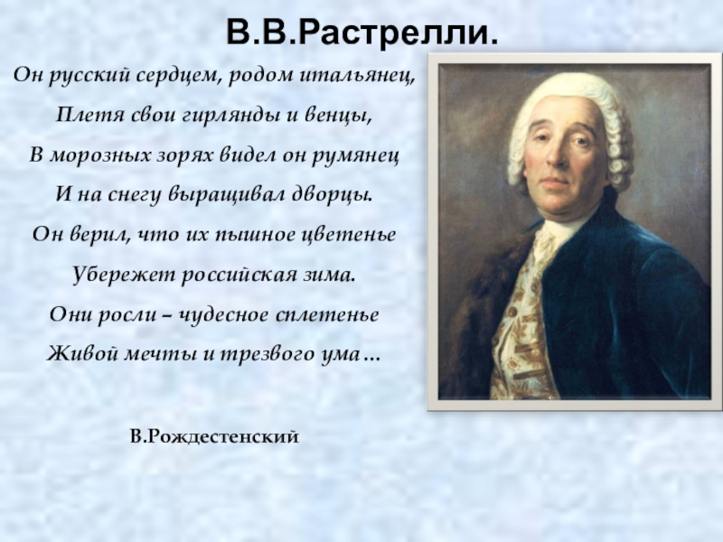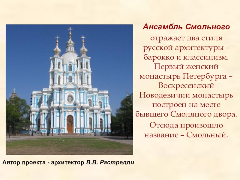 Автор проекта - архитектор В.В. Растрелли