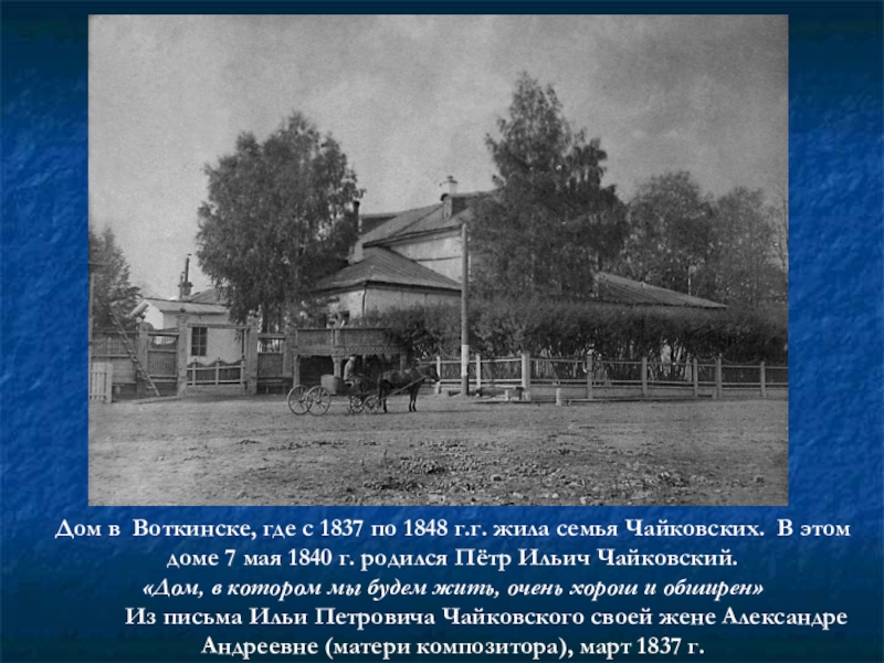 Слайд 2Дом в Воткинске, где с 1837 по 1848 г.г. жила семья
