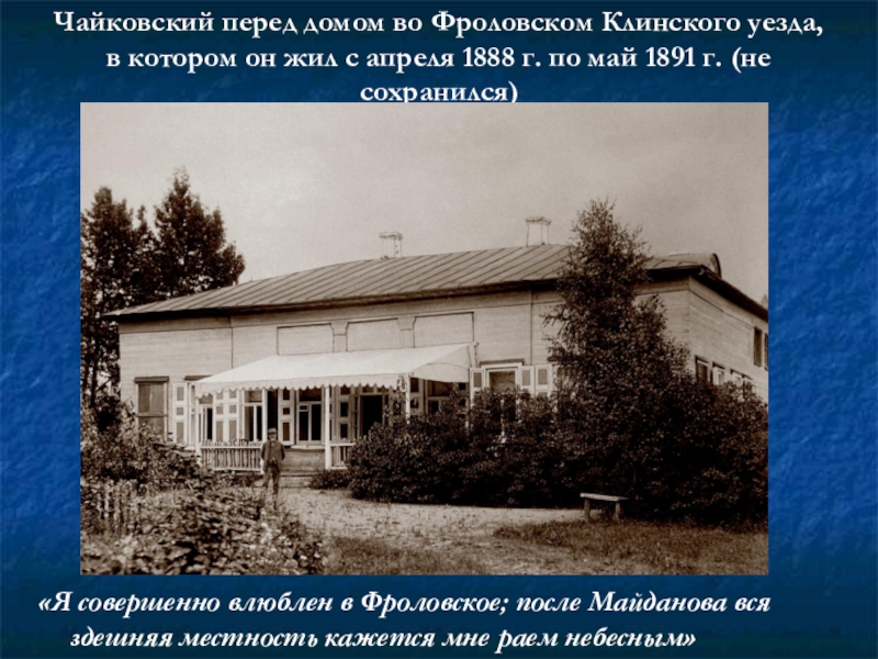 Слайд 26Чайковский перед домом во Фроловском Клинского уезда, в котором он жил