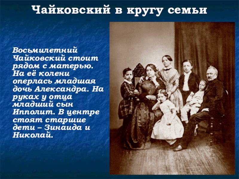 Слайд 6 Восьмилетний Чайковский стоит рядом с матерью. На её