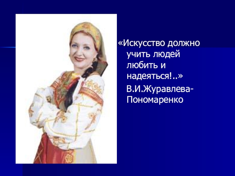 «Искусство должно учить людей любить и надеяться!..»  В.И.Журавлева-Пономаренко
