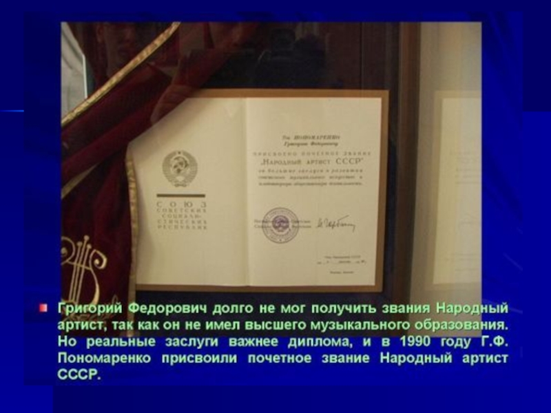 Презентация, доклад по музыке на тему Человек большого сердца и души – Г.Ф.Пономаренко