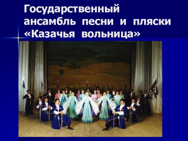 Слайд 20Государственный ансамбль песни и пляски «Казачья вольница»