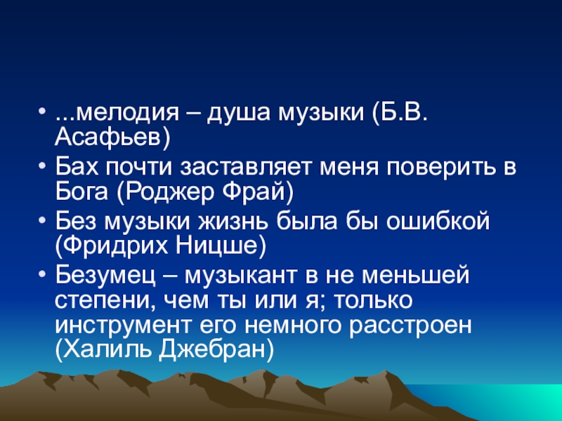 Слайд 16...мелодия – душа музыки (Б.В.Асафьев)