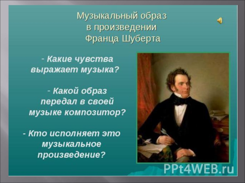 Австрия — 19 ноября 1828, Вена) — великий австрийский композитор, один из основоположников романтизма в музыке. Он написал около 600 песен, девять симфоний (в том числе знаменитую «Неоконченную симфонию»), литургическую музыку, оперы, а также большое количество камерной и сольной фортепианной музыки.