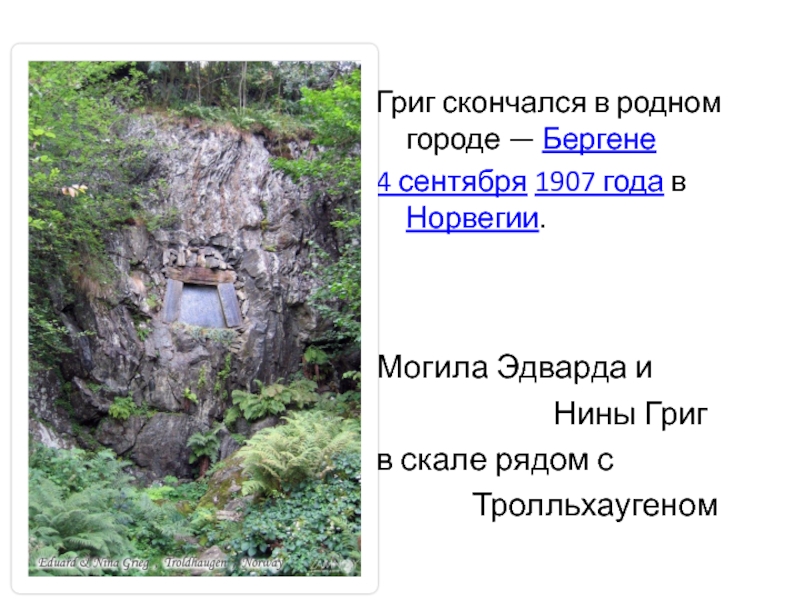 Слайд 8Григ скончался в родном городе — Бергене