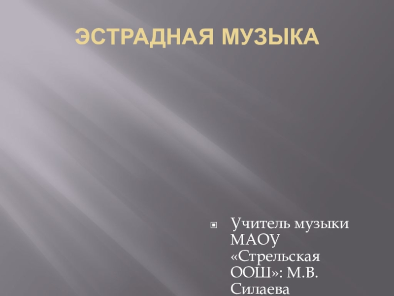 ЭСТРАДНАЯ МУЗЫКАУчитель музыки МАОУ «Стрельская ООШ»: М.В.Силаева