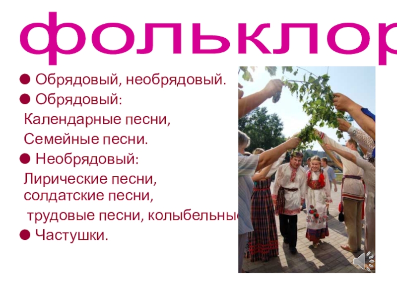 Презентация к уроку по слушанию музыки «Фольклор» .