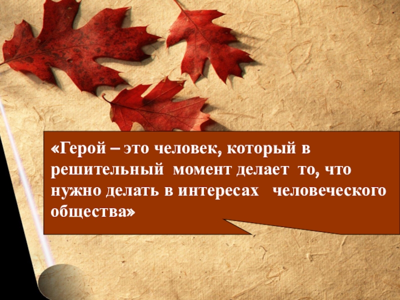 «Герой – это человек, который в решительный  момент делает то, что нужно делать в интересах   человеческого