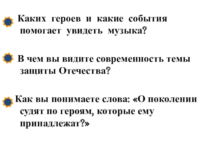 Каких героев и какие события помогает увидеть музыка?  В чем вы видите современность темы защиты