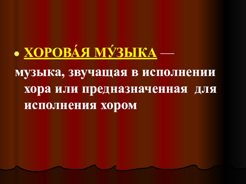 ХОРОВА́Я МУ́ЗЫКА — музыка, звучащая в исполнении хора или предназначенная для исполнения хором