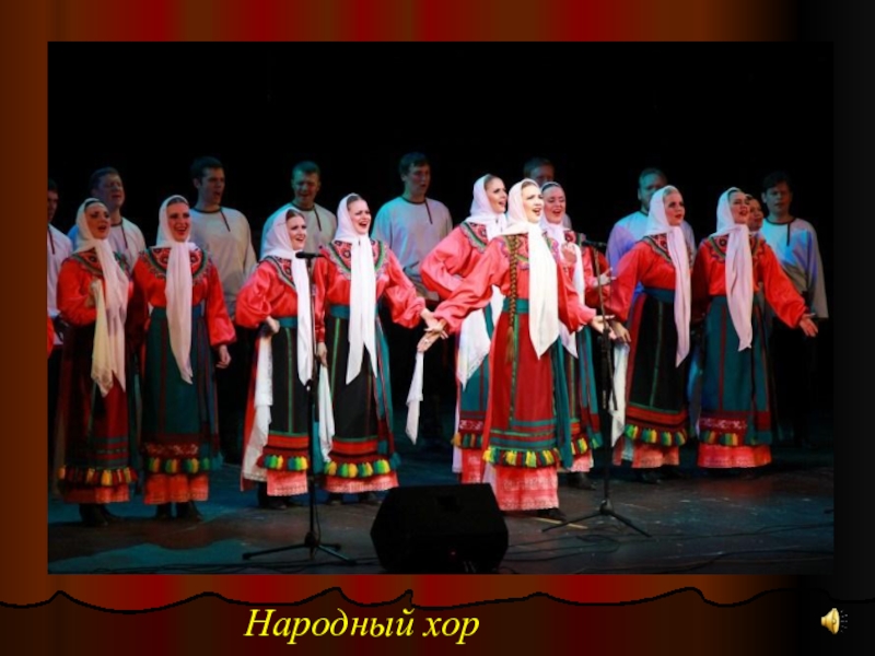 Народная хоровая музыка выросла из народной песни.Её темы, сюжеты и образы рассказывают нам о характере людей и