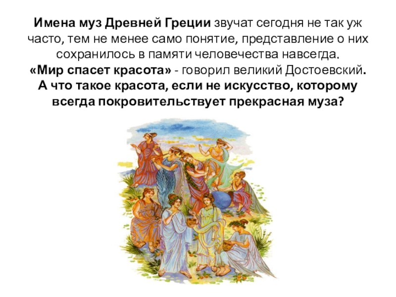 Слайд 18Имена муз Древней Греции звучат сегодня не так уж часто, тем