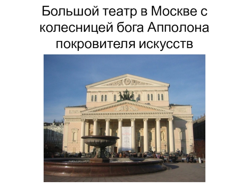 Слайд 16Большой театр в Москве с колесницей бога Апполона покровителя искусств