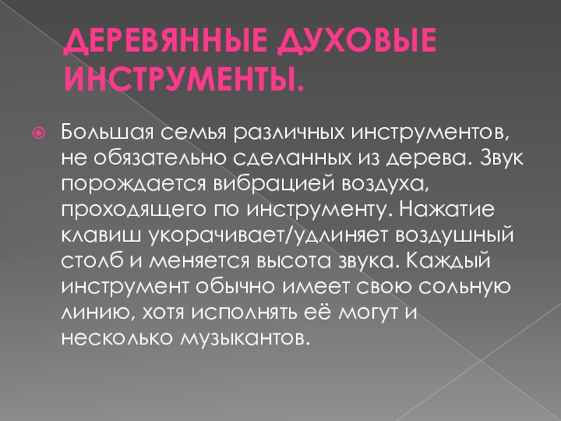 Большая семья различных инструментов, не обязательно сделанных из дерева.