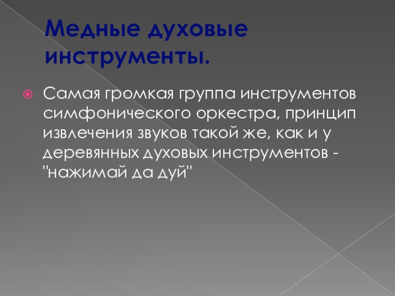 Слайд 13Медные духовые инструменты.