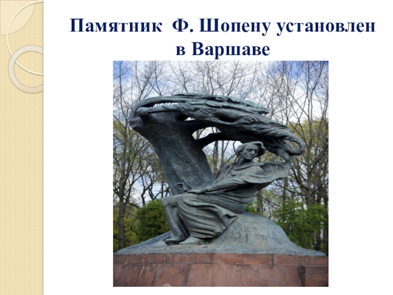 Слайд 15Памятник Ф. Шопену установлен в Варшаве